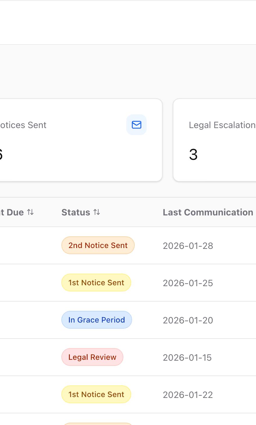 Track and prioritize delinquent residents before legal escalation